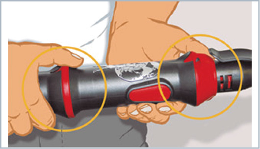 Gracias a los dos anillos de bloqueo de color rojo la transmisión de energía manual a la guía pasacables se realiza de forma óptima aprovechando toda la fuerza de empuje.